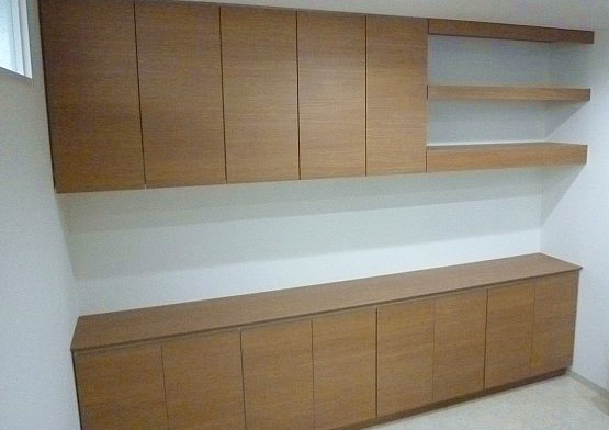 壁面の寸法に合わせて、スペースを無駄なくいっぱいいっぱいに作る壁面収納棚。